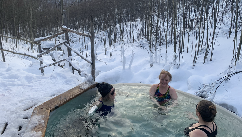 Accessible only by dog team, snowmobile, or foot, Tolovana is an absolute oasis amidst the vast, harsh landscapes of Interior Alaska. During your stay, explore each of the three private hot tubs spread along the hot springs ravine. Experience the northern lights dance above you as you lay back and relax in a steaming tub, stars twinkling, creek bubbling, and a gentle breeze rustling the trees. In between soaks we will eat well, cuddle the sled dogs, rejuvenate and relax.